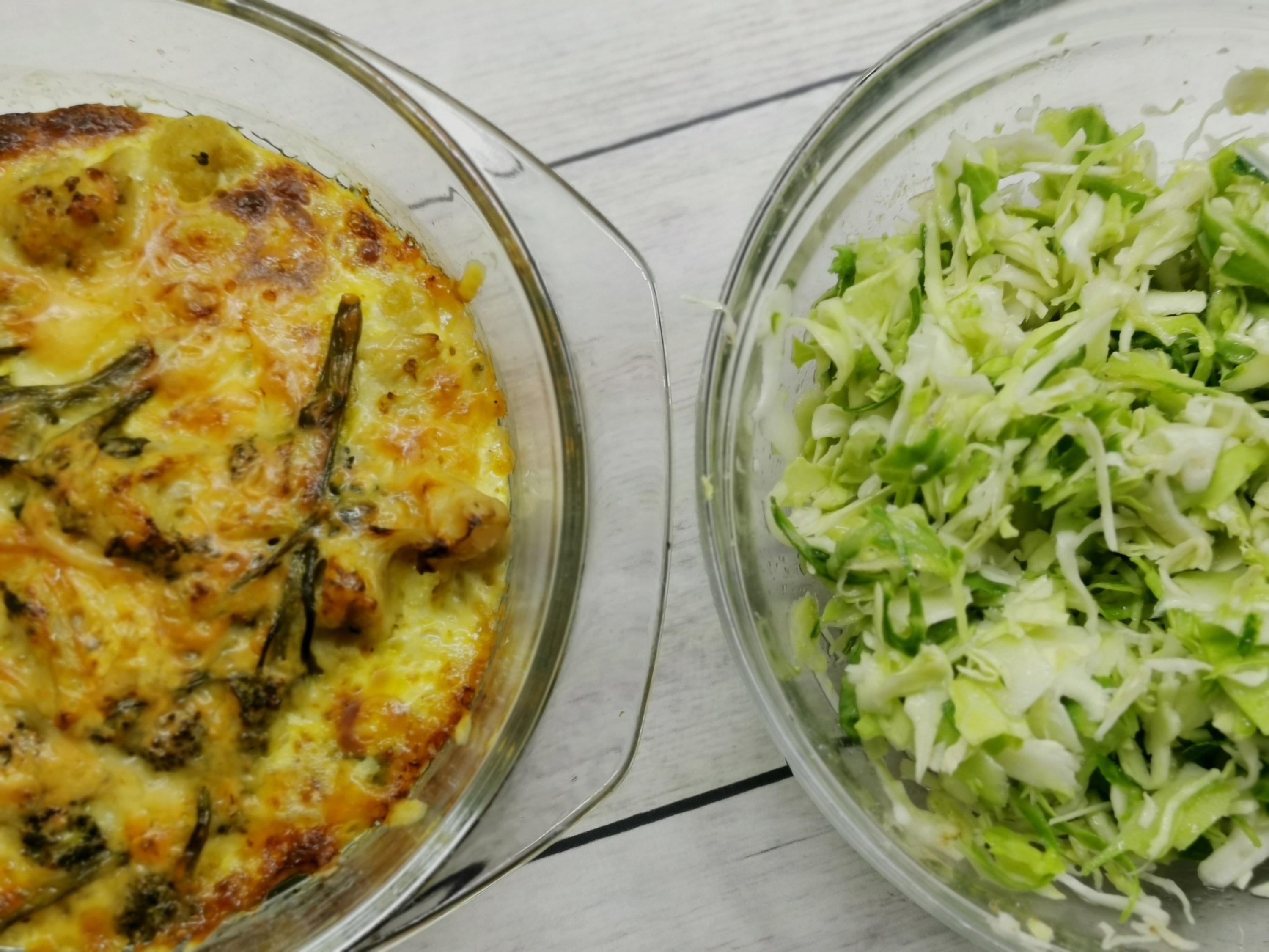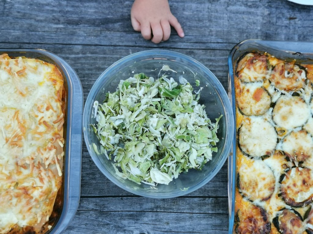 LCHF: zloženka iz bučk z mletim mesom, zeljna solata