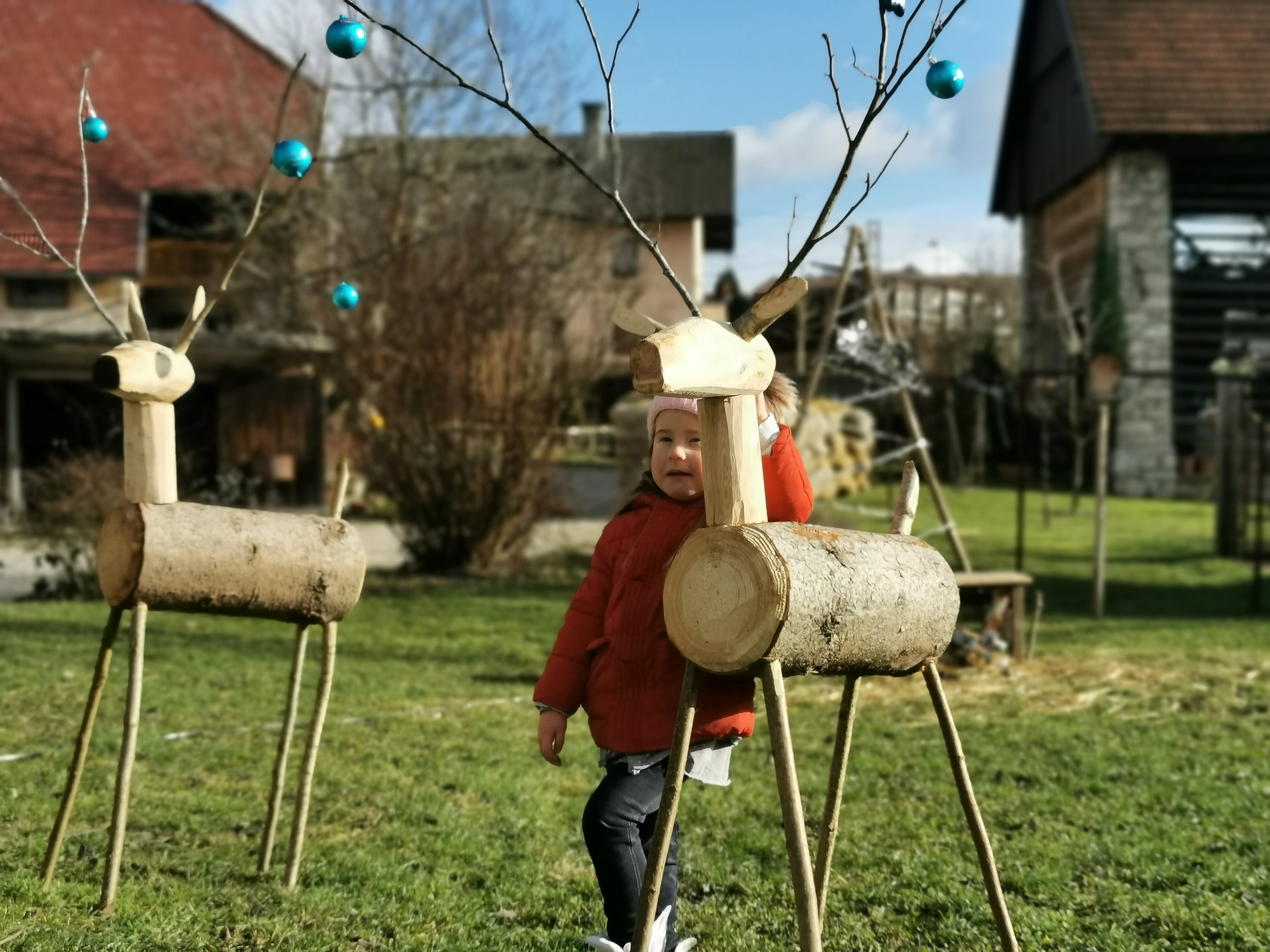 Pretekli teden smo uspeli narediti čudovite fotografije z Nives Brelih. Seveda smo šli v predbožičnem dežju v gozd po mah in naša smrekica se je zasvetila na božični večer, ko je Božiček nastavil darila. Na božični dan pa sra se nam pridružila še dva jelenčka, ki ju je izdelal Matej.