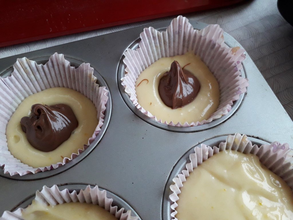 Lahko pa se igramo z okusi in polnili. Ko polnimo košarice damo eno žlico mase za kolačke, nato žličko čokoladnega namaza ali marmelade ali vanilijev kreme in prekrijemo s še eno žlico mase.