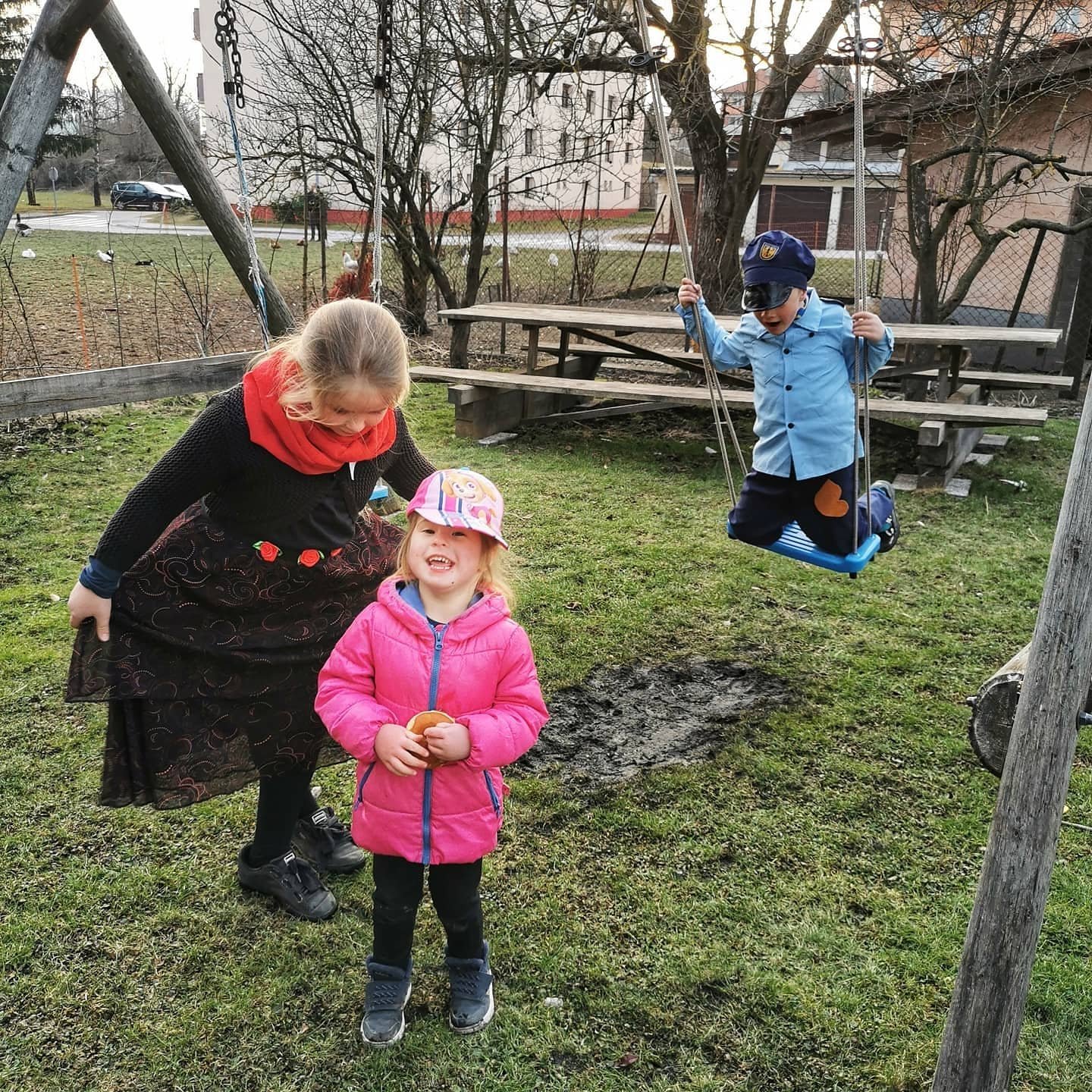 Pa smo pokopali še pusta. Hana je želela biti španska plesalka. Jurij je ponovil lansko kariero policaja, Piki pa je oblekla čebelico, vendar jo je imela le v vrtcu.