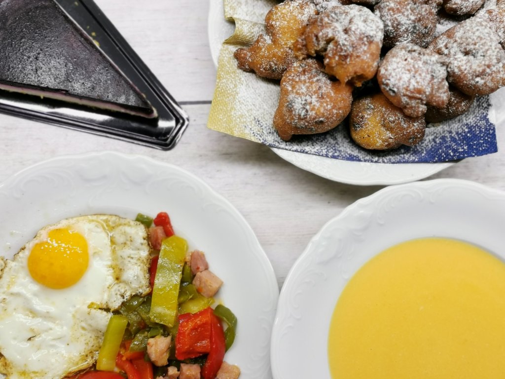 LCHF: pečena paprika, pečena jajčka, borovničeva torta brez moke in sladkorja (Mercator)
