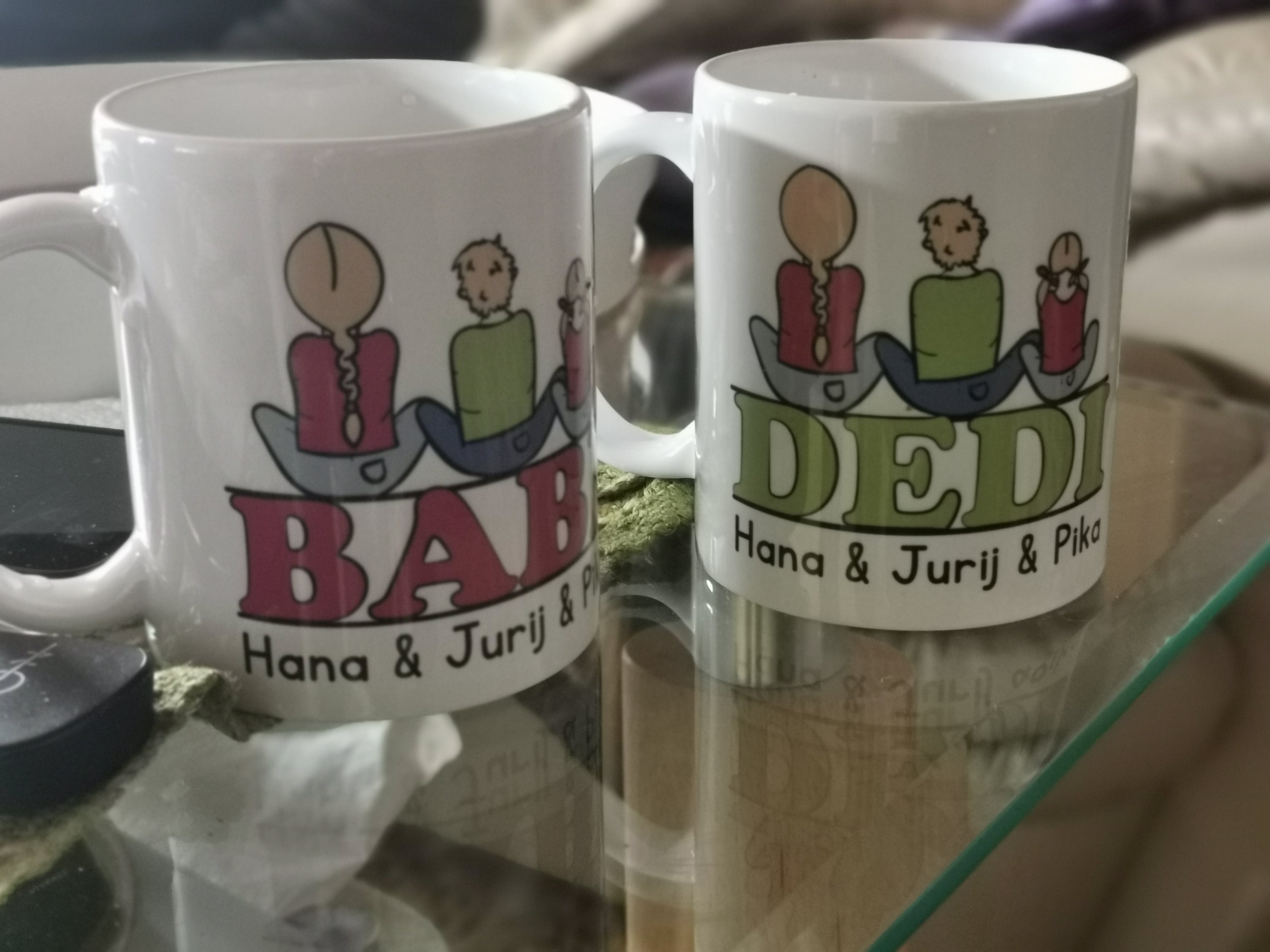 V soboto pa po devetih mesecih na Štajersko k mojim domačim. Nesli smo jim košarico dobrot in čisto njuni skodelici, ki sem jih naročila pri Embalaser.