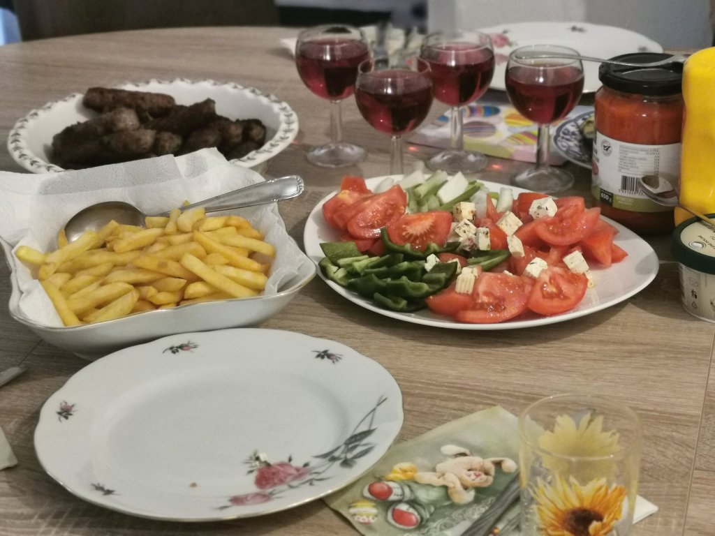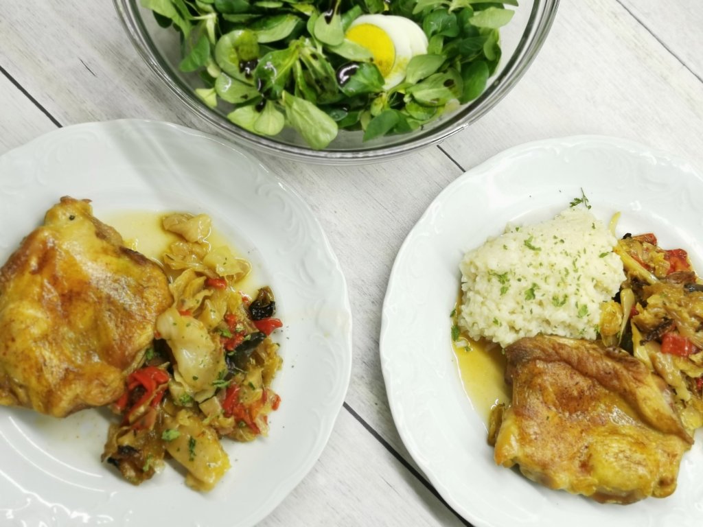 - Mešana zelenjava (pospravi hladilnik) pečena v pečici skupaj z piščančjimi bedrami brez kosti