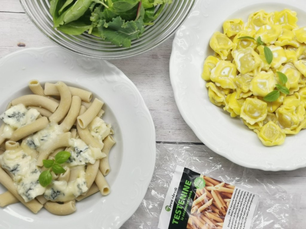 LCHF: testenine iz sezamove moke z gorgonzolo, mešana solata
