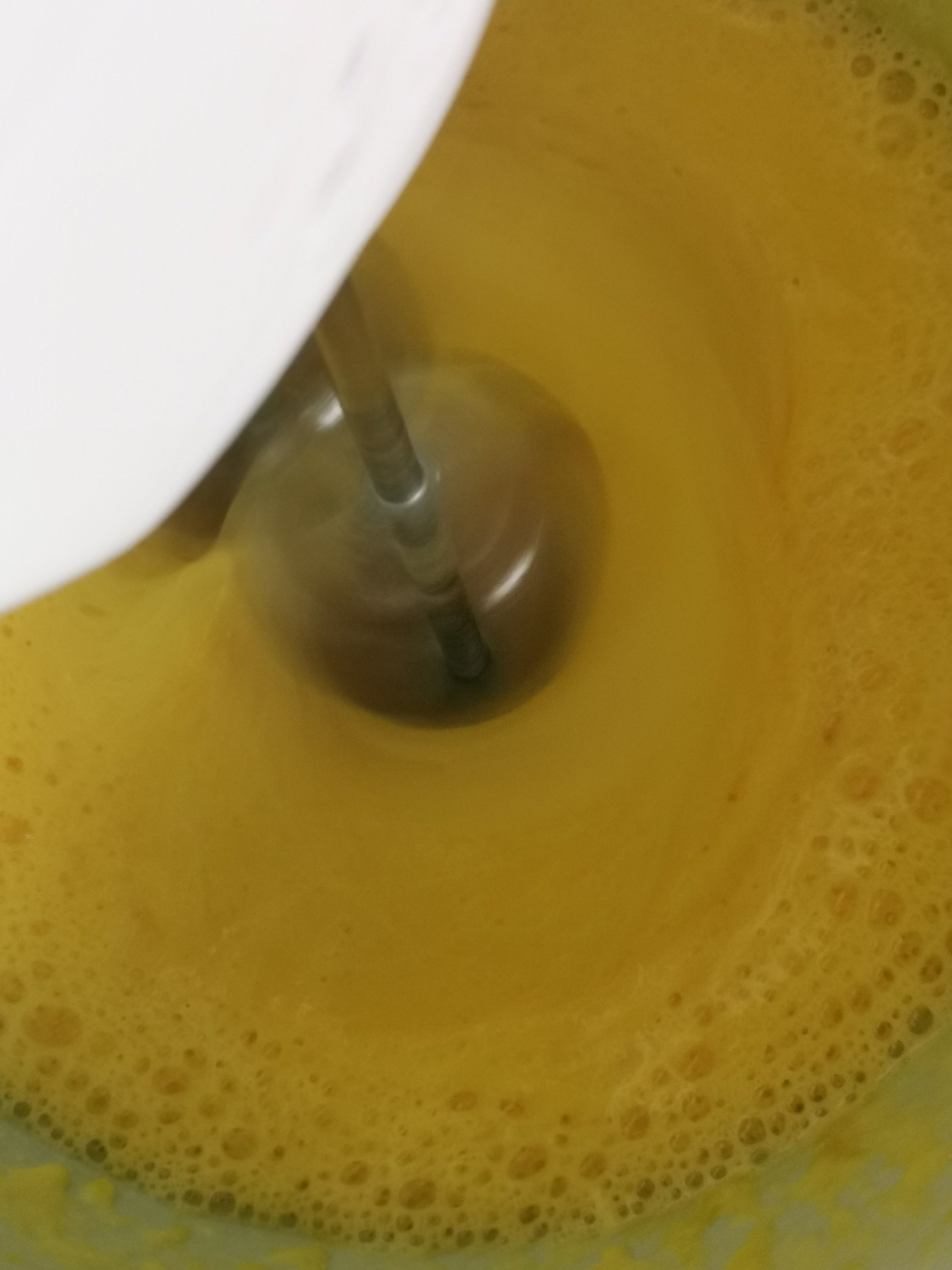 V skledo ubijemo jajca, dodamo eritritol in sol. Z mešalnikom mešamo, dokler se vsebina ne podvoji v gosto peno. Nato postopoma dodajamo razmaščeno makadamijevo moko in vodo.