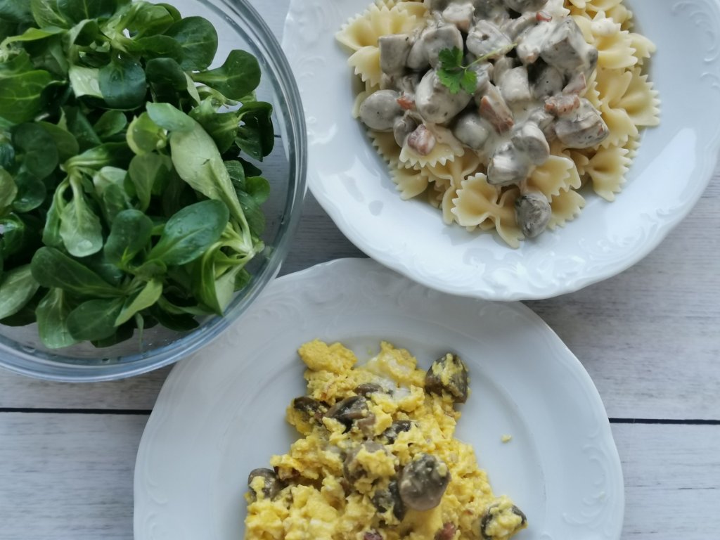 LCHF: šampinjoni z jajčko, motovilec