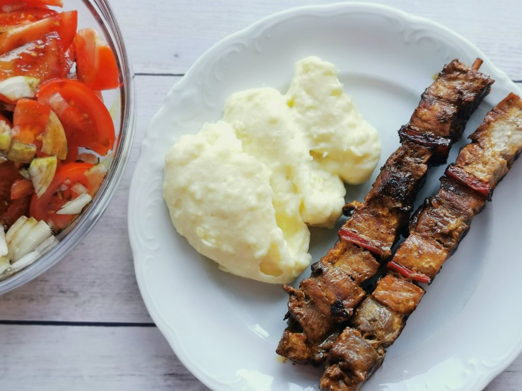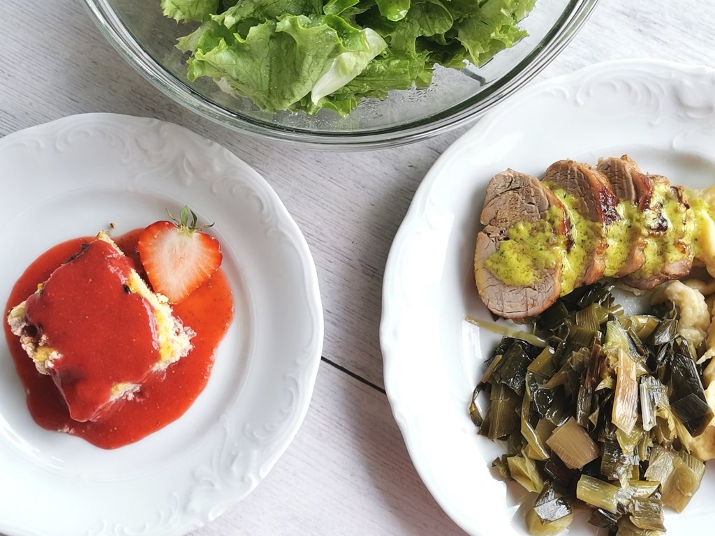 - Svinjska ribica z zeliščno majonezo (domači majonezo sem dodala peteršilj, česen, drobnjak)