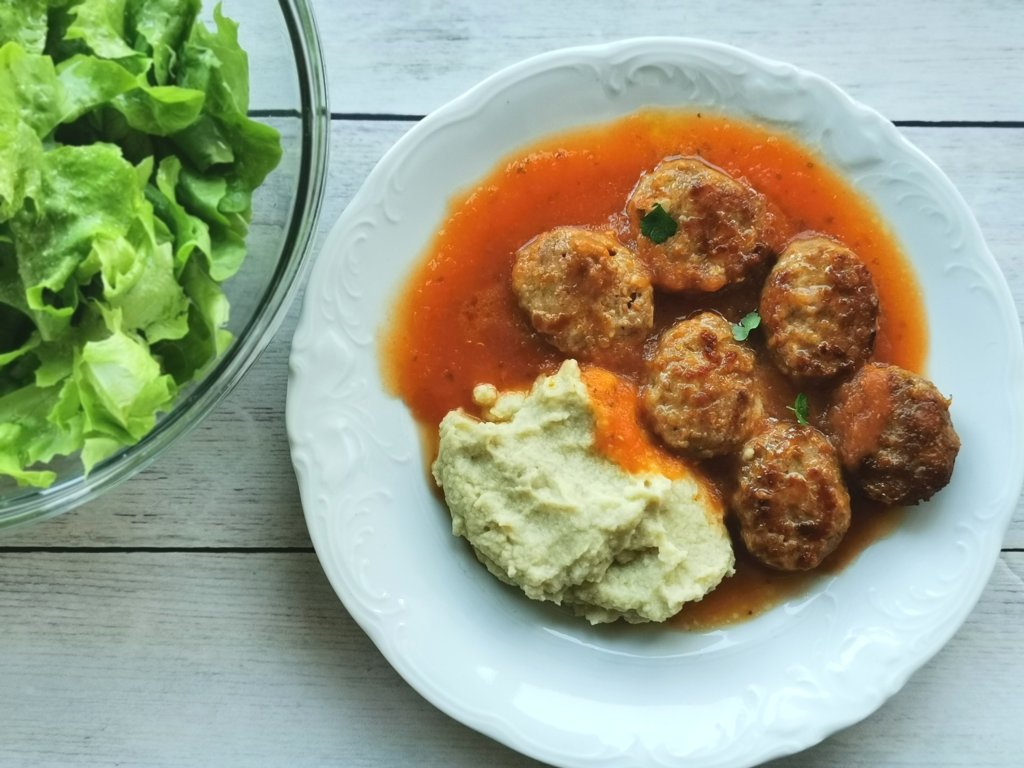 - Testeninske solata z domačo majonezo in češnjevim paradižnikom.