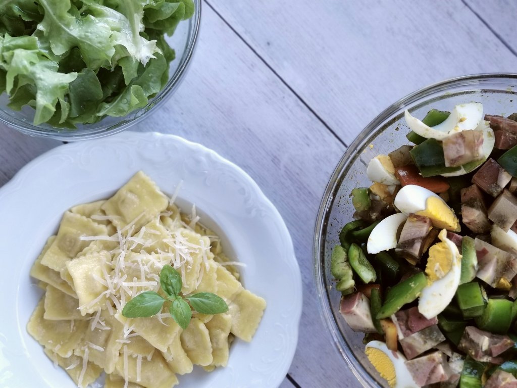 LCHF: solata: tlačenka, paprika, jajce, čebula