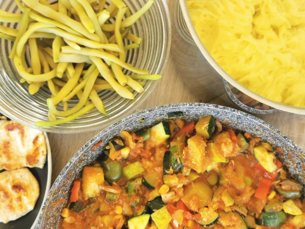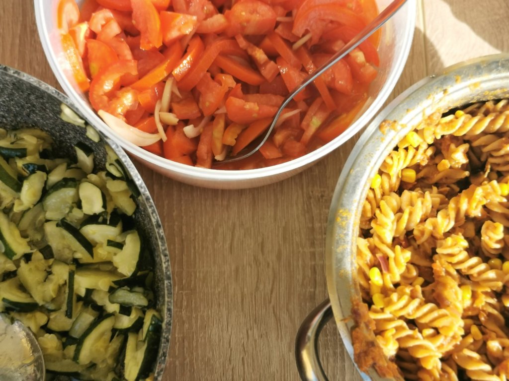 LCHF: bučke z piščančjim mesom, solata iz paradižnika, paprike in kumare