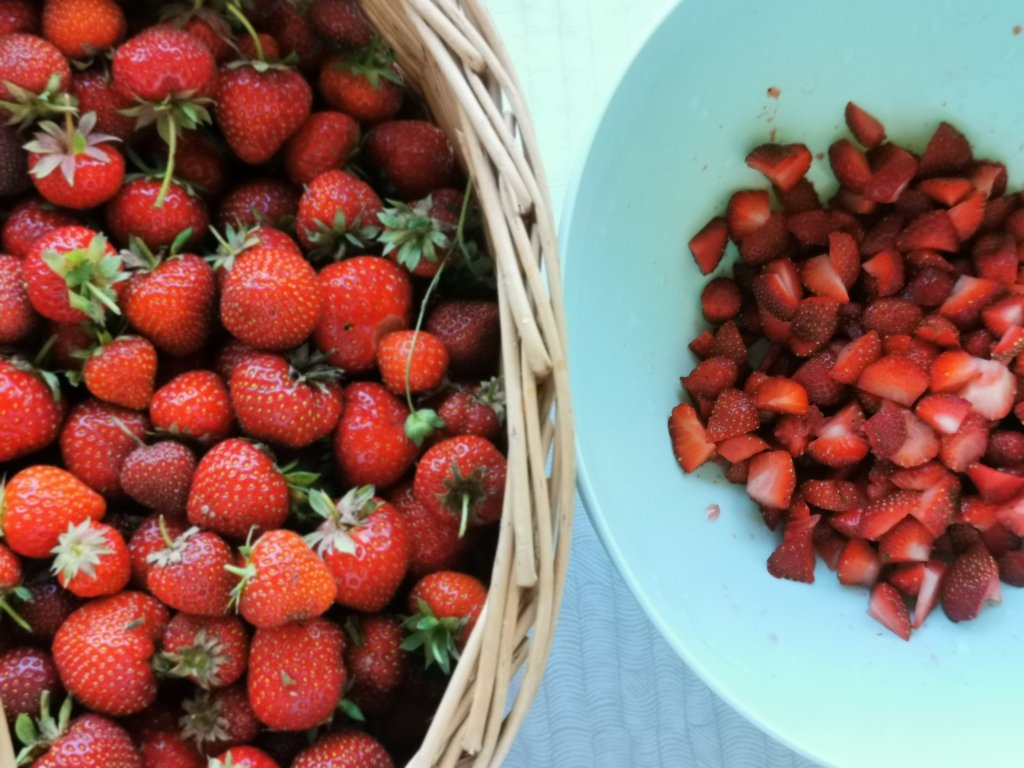 Vso sadje nabiramo doma in ga zamrzujemo, ko se ga dovolj nabere skuhamo marmelado. Na primer jagode očistim in razrežem, tako da so že pripravljene za kuhanje marmelade.
