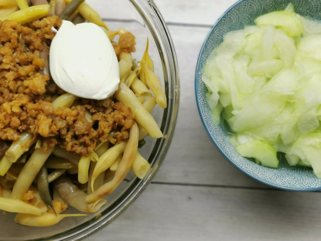 - Stročji fižol z ocvirki in kislo smetano
