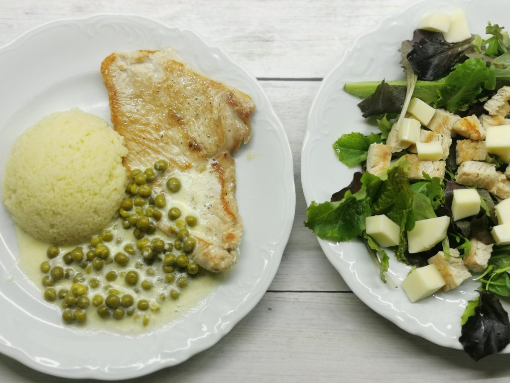 LCHF: solata s puranjim zrezkom, mocarelo in jogurtovim prelivom