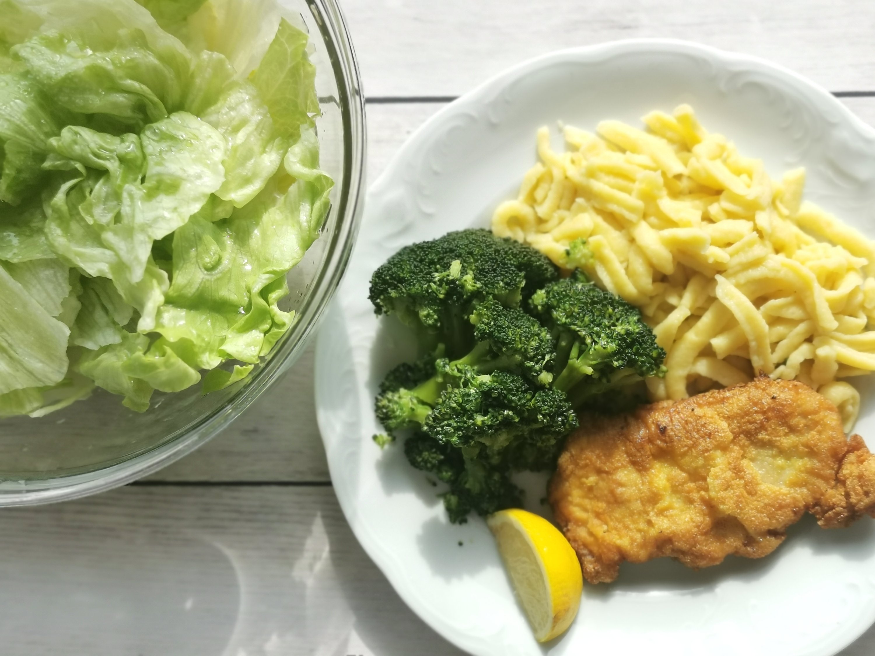 - Ocvrti zrezki iz svinjskega kareja (paniranje: zelena bananina moka, jajca, NoCarb drobtine)