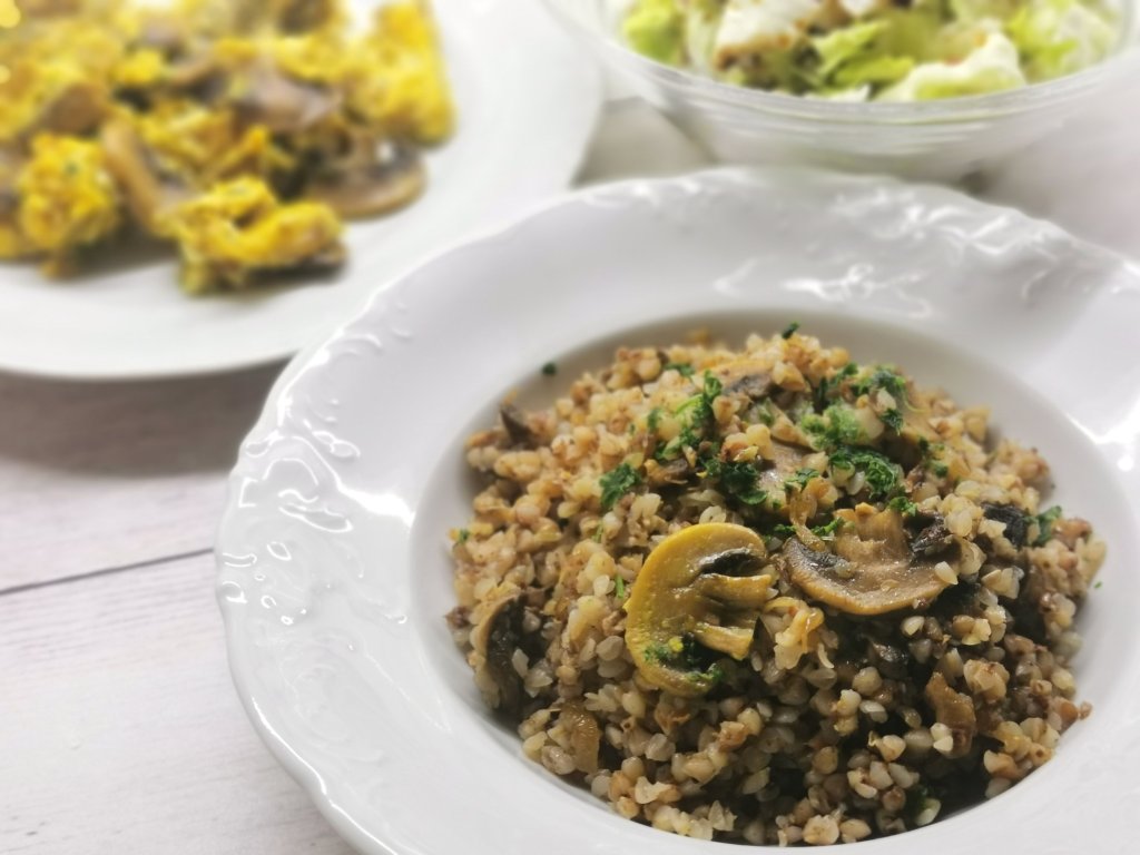 - Ajdova kaša s šampinjoni