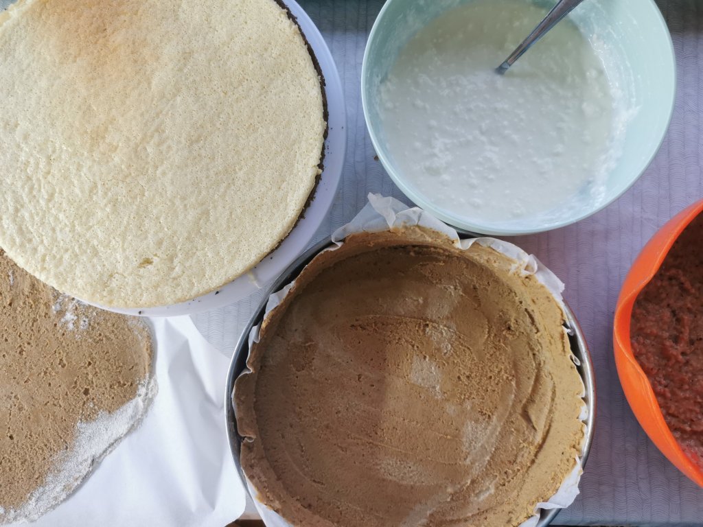 Speči moramo tri biskvite. Dvakrat svetli biskvit in enkrat temni.