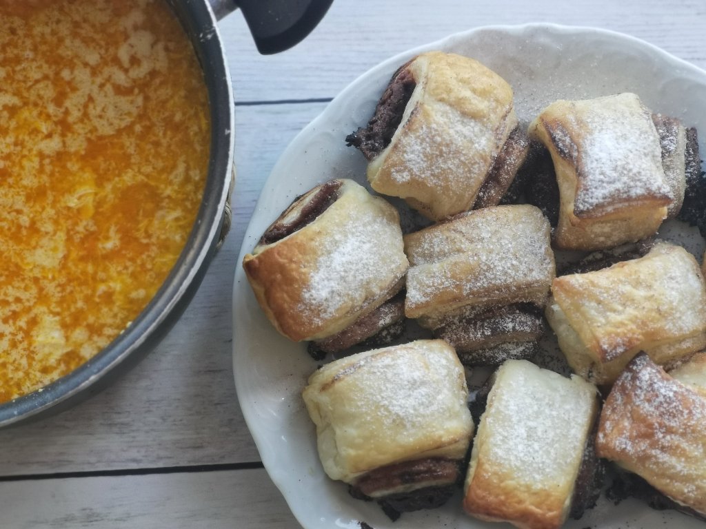 - Nutelini zvitki (listnato testo sem namazala z nutelo in zvila, narezala in spekla v pečici)