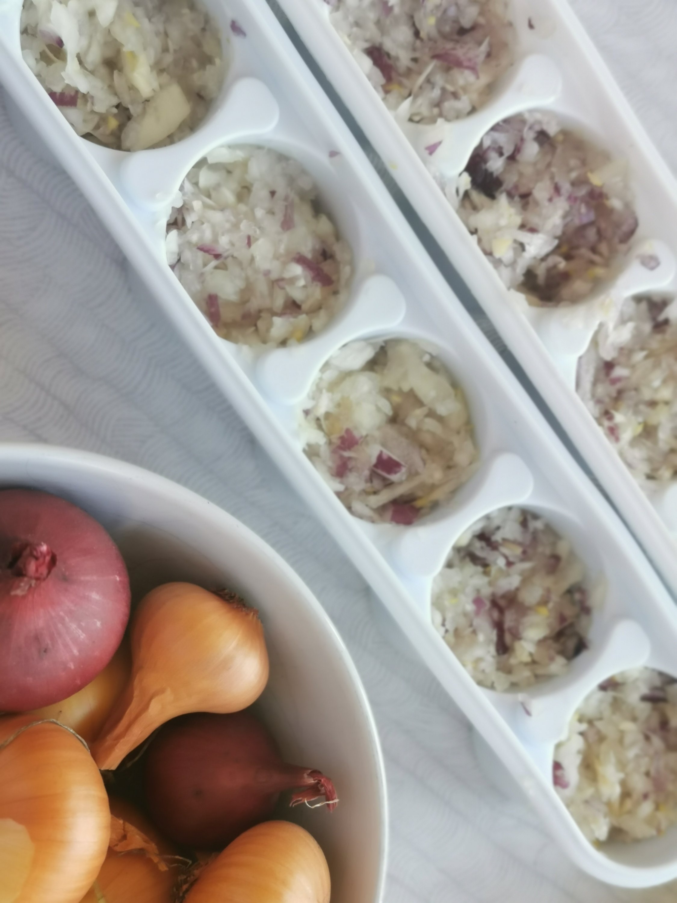 Na vrtu smo malo pozno, a vseeno posejali grah ter posadili kapusnice (zelje, ohrovt, brokoli, cvetačo, kolerabo). Domačo čebulo, ki sem jo imela na podstrehi, sem olupila, sesekljala in porcijsko zamrznila. Le nekaj sem jih pustila za kakšno solato.