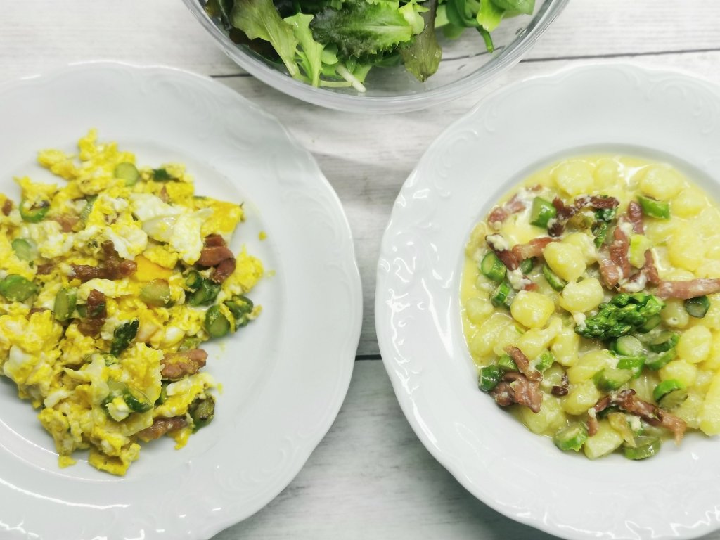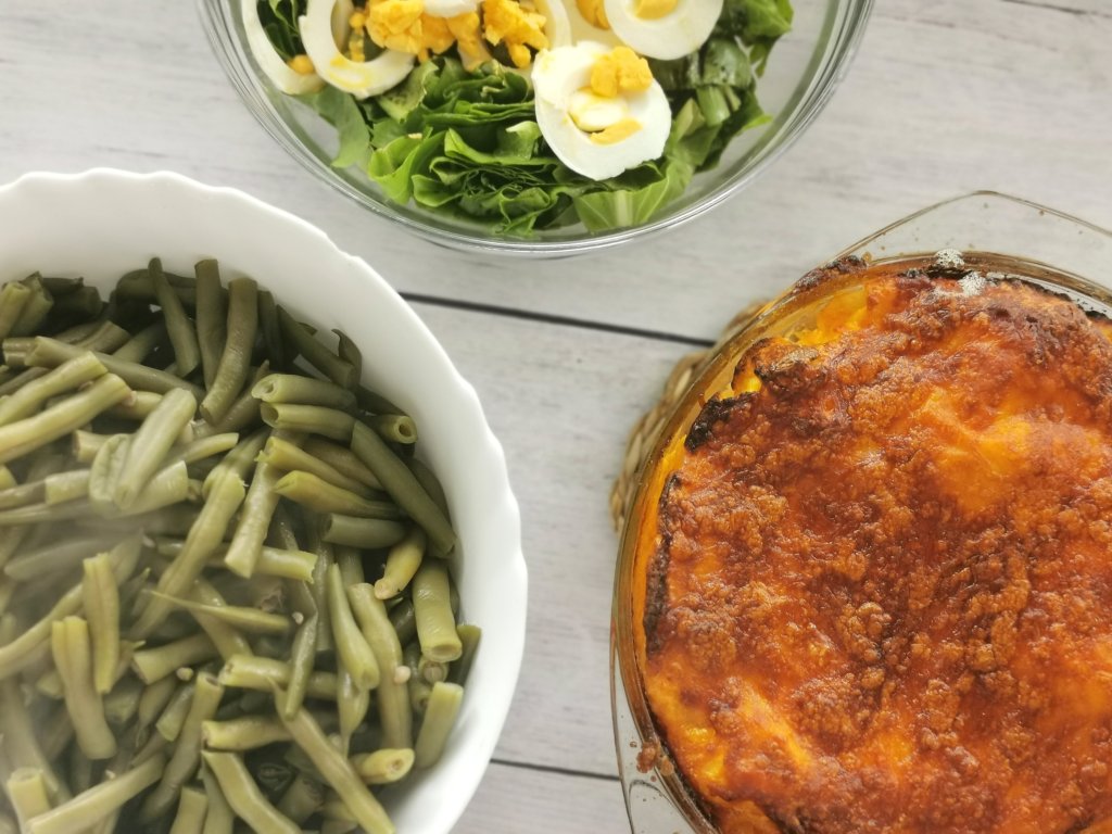 LCHF: stročji fižol z omako iz mletega mesa, radič z jajčki