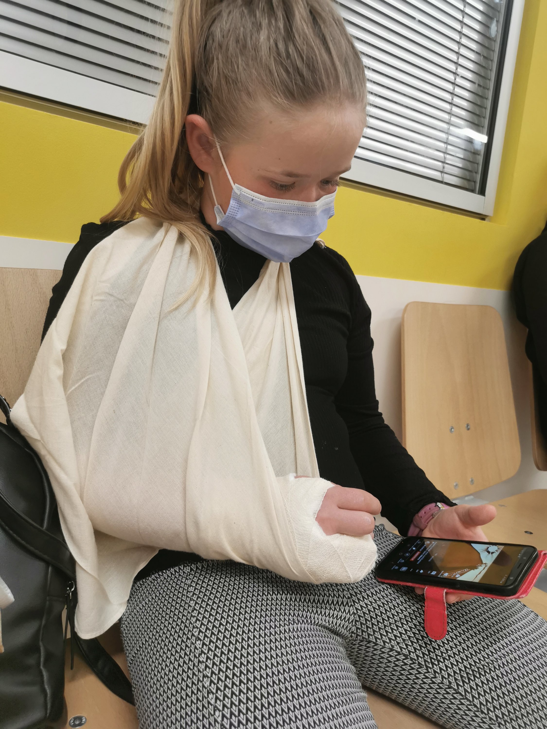 Ponedeljkovo popoldne sem ponovno preživela na urgenci. Hana si je pri športni vzgoji zlomila mezincek desne roke in je dobila mavec.