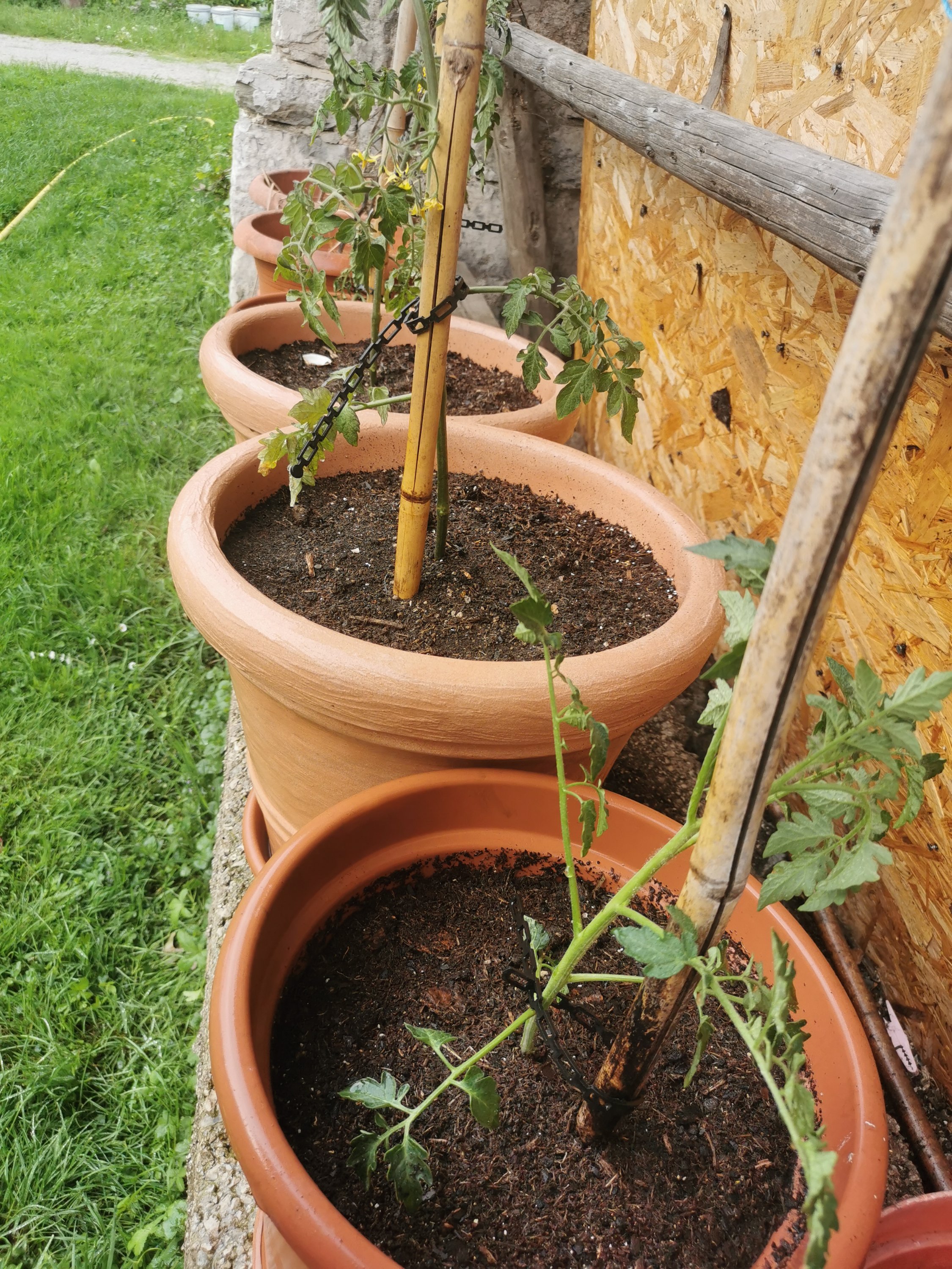 Tople in sončne popoldneve smo zunaj. Posadili smo prve paradižnike, dozorele so tudi prve jagode.