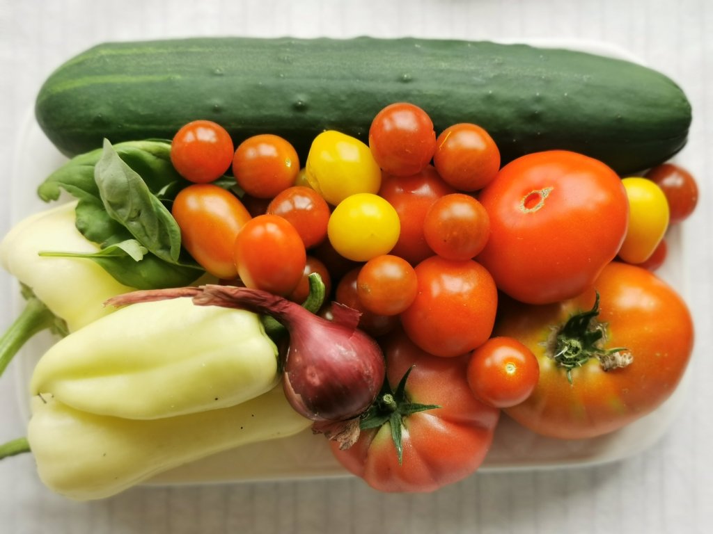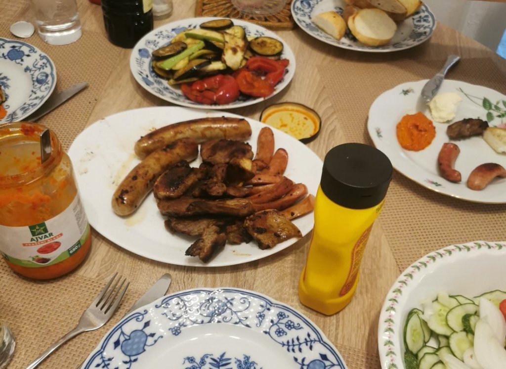 LCHF: pražene bučke in piščančje meso, kumare v solati
