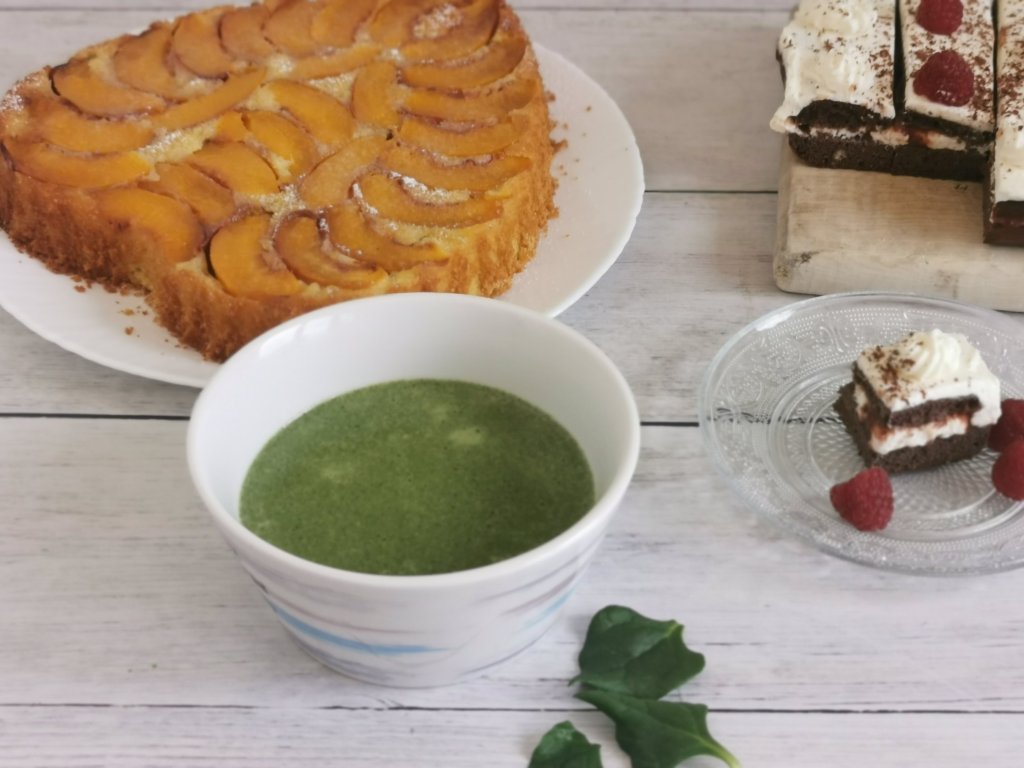 LCHF: špinačna juha, čokoladno sadno #lchf pecivo z vanilijevo kremo