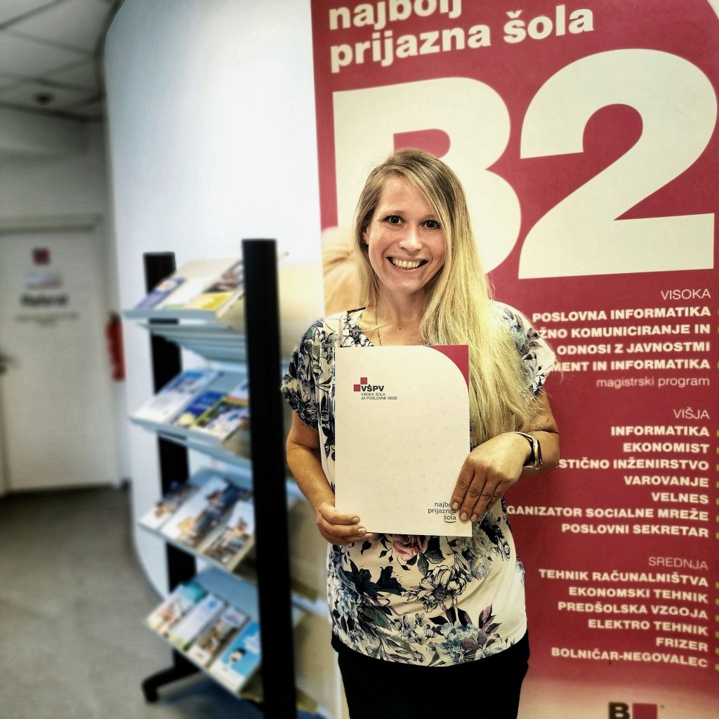 V petek sem segla po svojih sanjah in se vpisala na podiplomski študij smer marketing management na B2 Visoki šoli za poslovne vede.