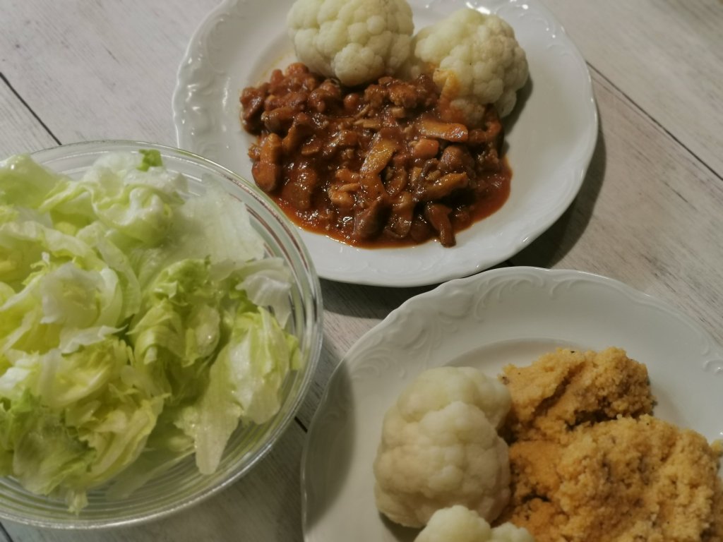 LCHF: cvetaÄa, omaka iz gobic, mletega mesa in paradižnikove omake