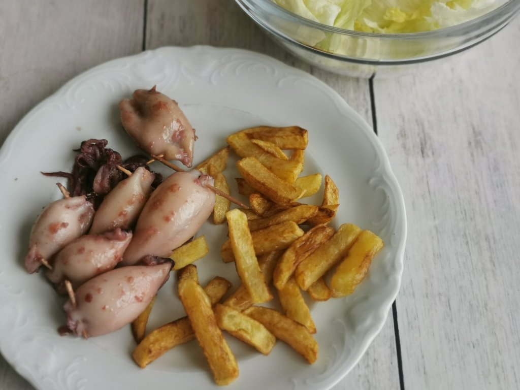 - Polnjeni lignji (Ŕunka, sir)