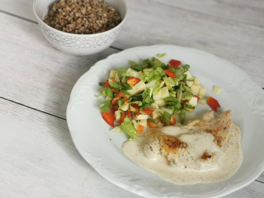 LCHF:Ā svinjina v sirovi omaki, brokoli, solata