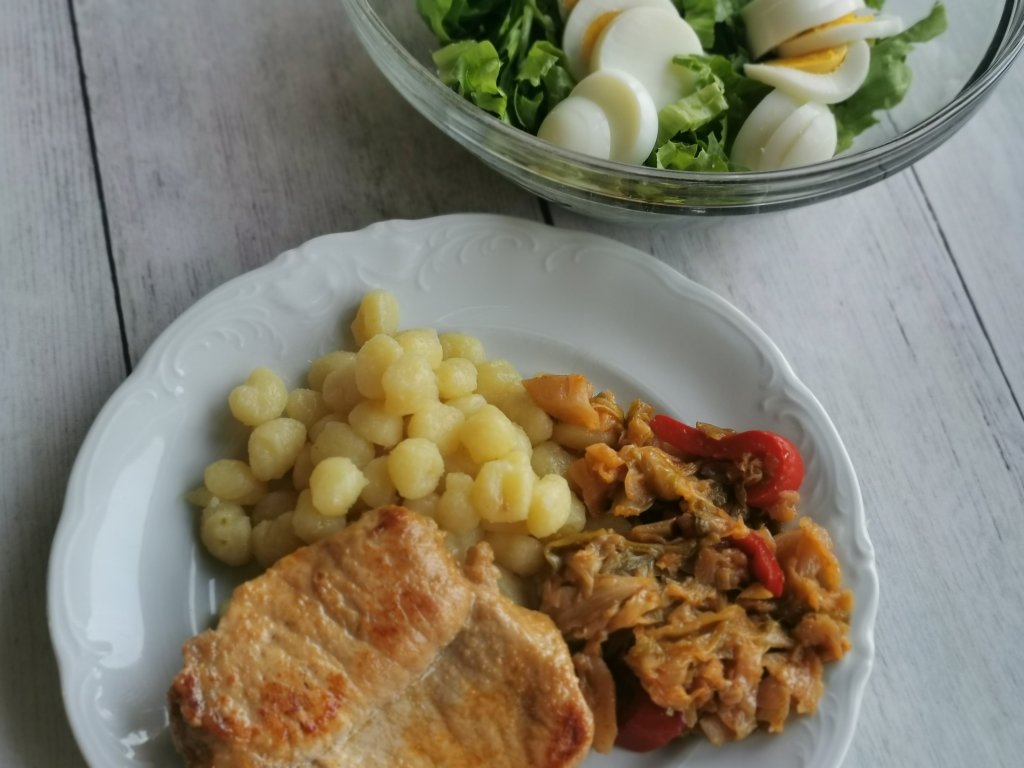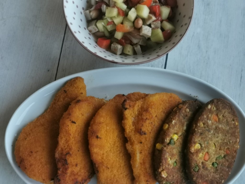LCHF:Ā MeÅ”ana solata (paprika, paradižnik, kumare, na koÅ”Äke narezani zrezki, ki so ostali prejÅ”nji dan, Äebula,…)