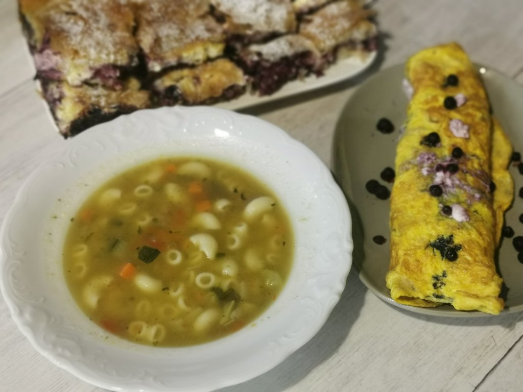 LCHF: jajÄŤna omleta, polnjena s skuto in borovnicami