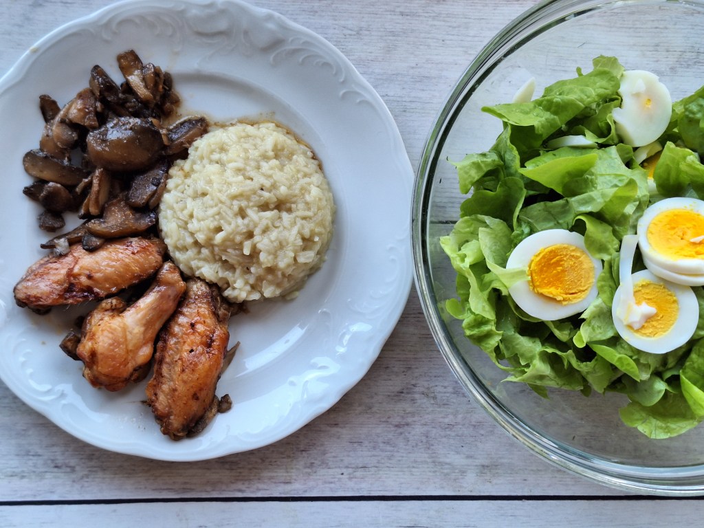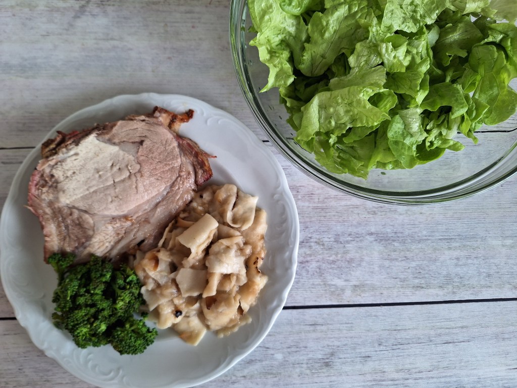 LCHF: dusena zelenjava, peÄŤen jajÄŤek, solata