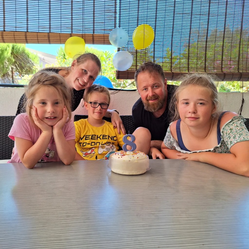 Potem pa je Jurij zbolel. V petek ob dveh zjutraj je začel bruhat, imel drisko. Po 12ih urah se je stanje umirilo. Mislili smo, da smo iz najhujšega. Nato mu je zacela naraščati temperatura in spet je začel bruhati. Zvečer sem ga peljala k dežurnemu zdravniku, kjer je dobil infuzijo. Soboto je preležal s temperaturo 39°C in več. V nedeljo se je temperatura umirila, ostala je le še driska. A mali je svoj rojstni dan preležal. Vstal se je le za pihnit svečko na sladoledni torti.