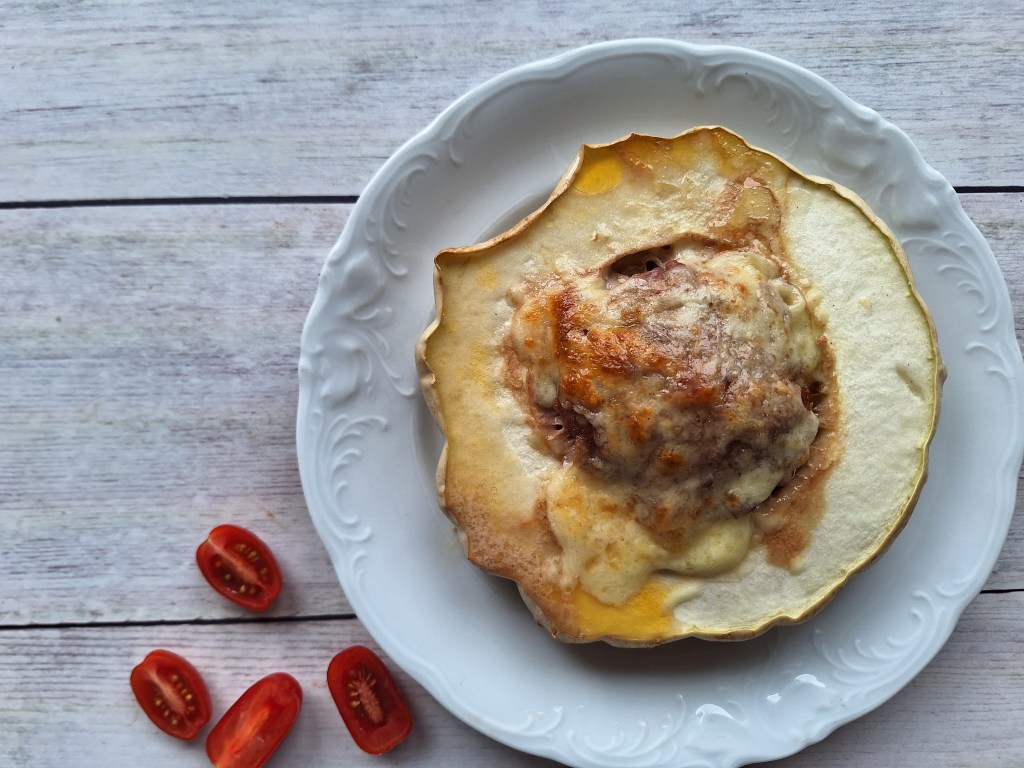 - Polnjena buča patišon z mletim mesom