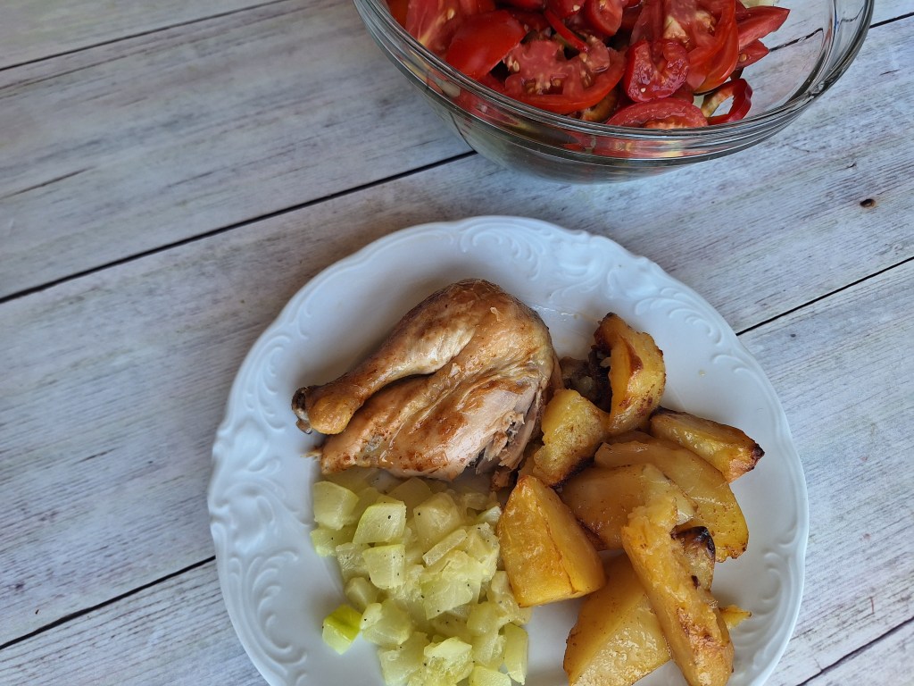 LCHF: praženo piščančje meso s porom in paradižnikom, ohrovt v solati