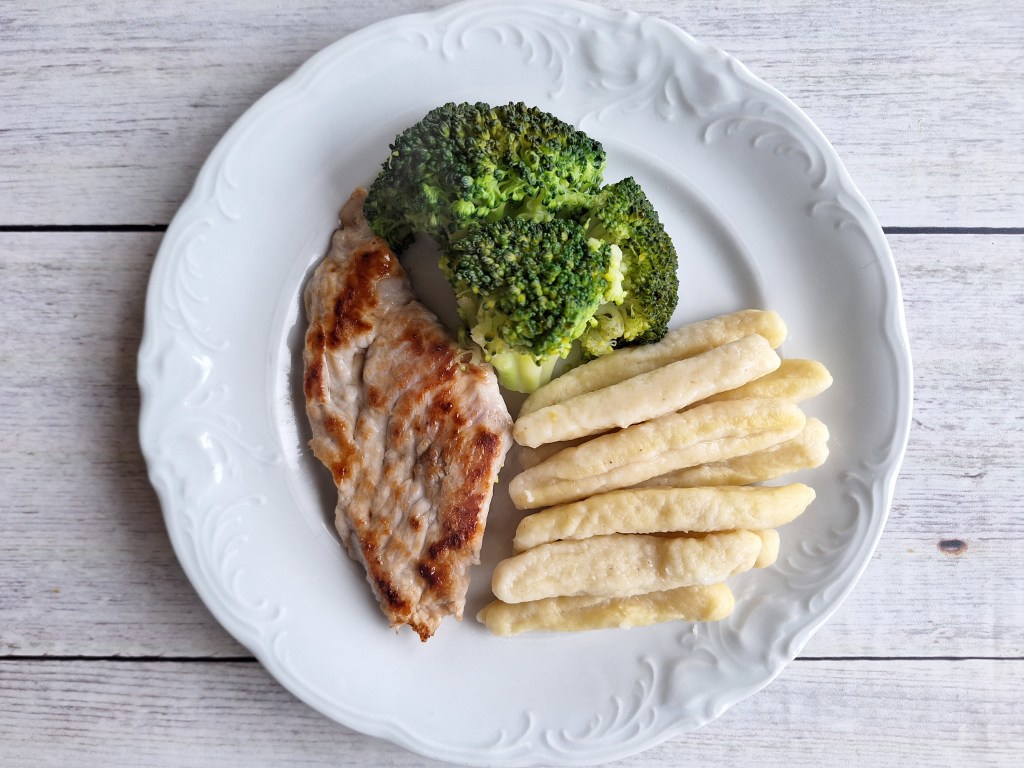 LCHF: praĹľeno puranje meso z buÄŤko in malancani