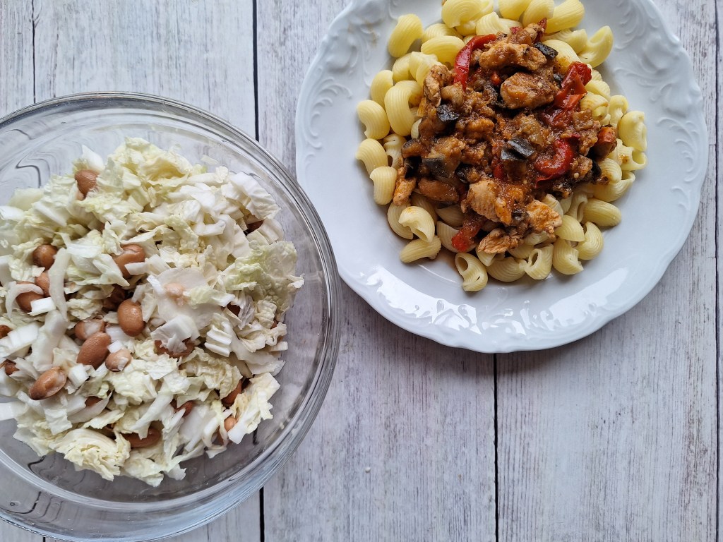 - Omaka s piščančjim mesom, malancani, paradižnikovo omako