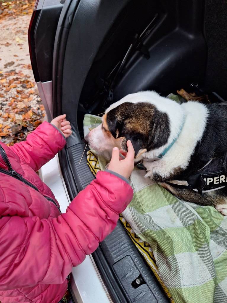 Počitniški teden smo bili varuške sosedovemu kužku, ki je šel z nami na drugi izziv Logaških 7 (šolski projekt osvajanja logaških vrhov), šel pa je tudi z nami v gozd po marele.