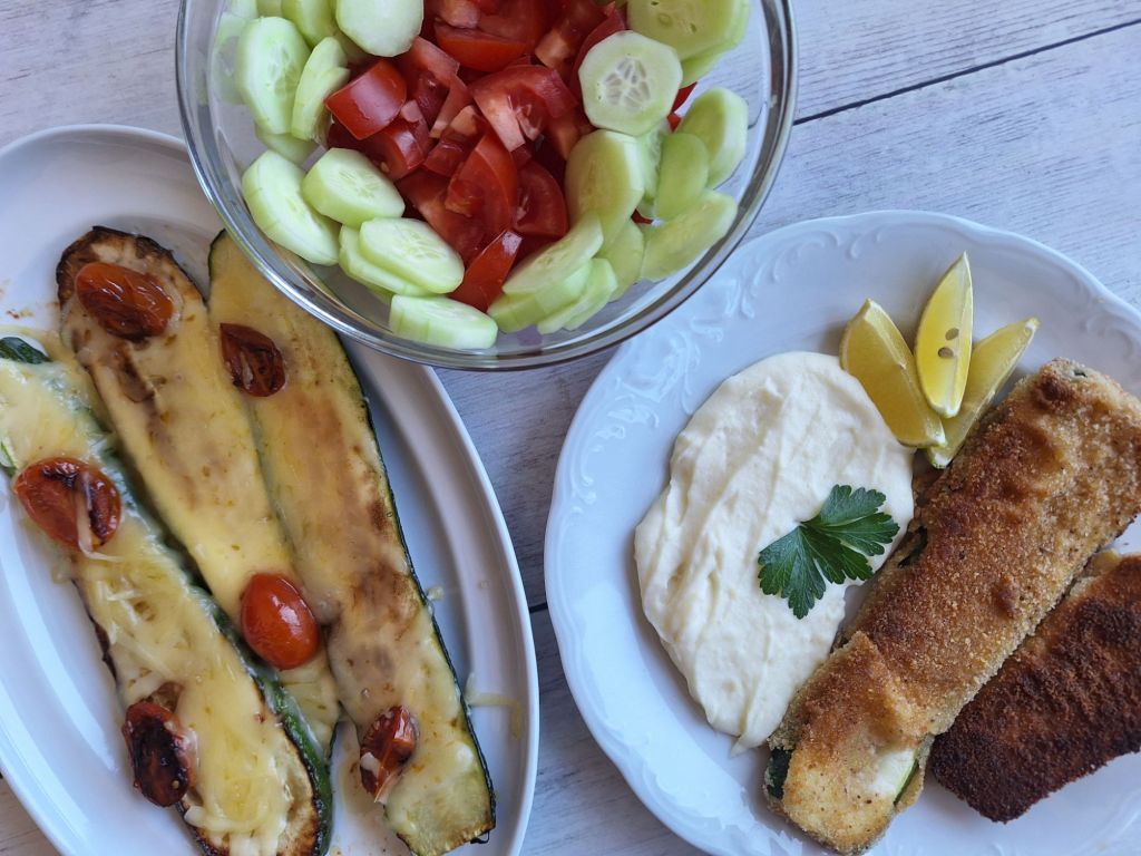 LCHF:Ā Ā peÄene buÄke s sirom in paradižnikova solata s kumarami