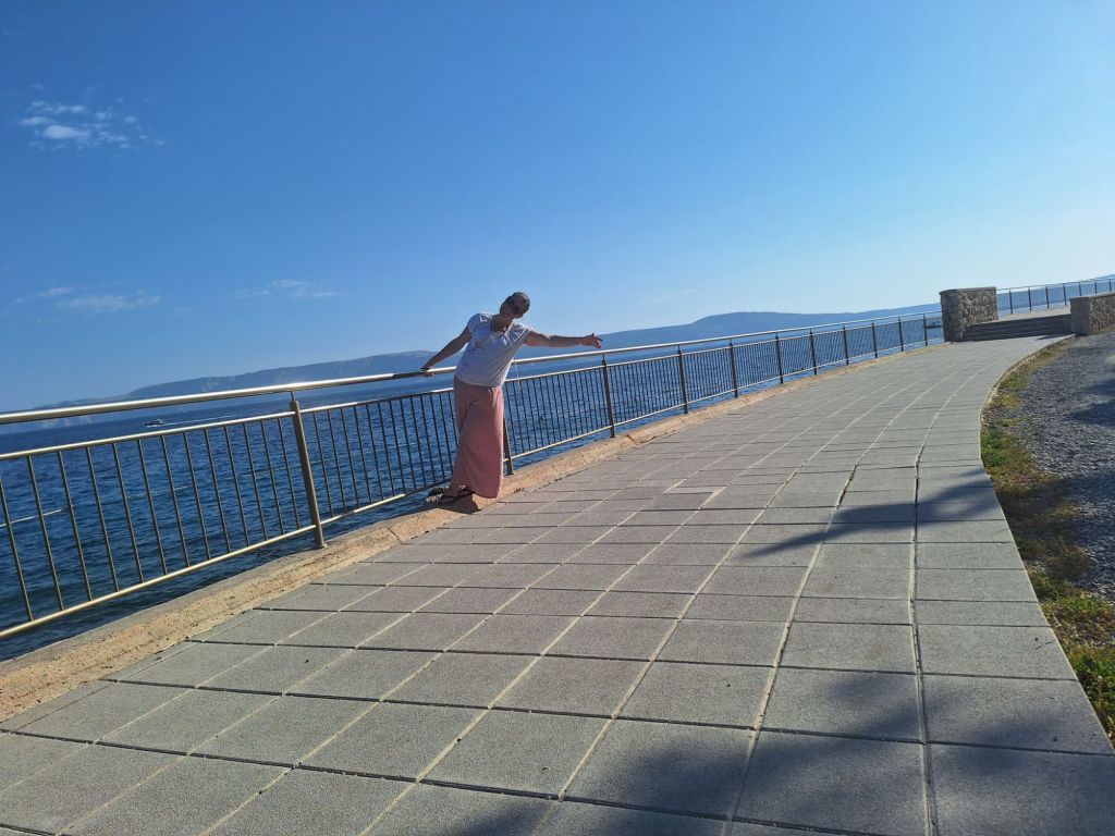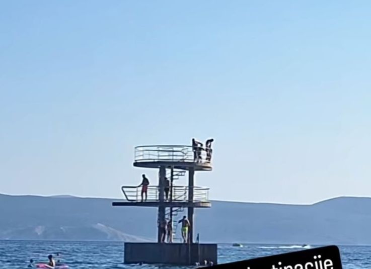 V Novem Vinodolskem smo bili namreč pred dvema tednoma in je bilo otrokom tako všeč, da so prosili, če se lahko na poti na naš dopust ustavimo. Apartma v naših Blacah smo imeli rezerviran od nedelje, zato sva jim uresničila željo in so se dve uri kopali ter skakali s stolpa.