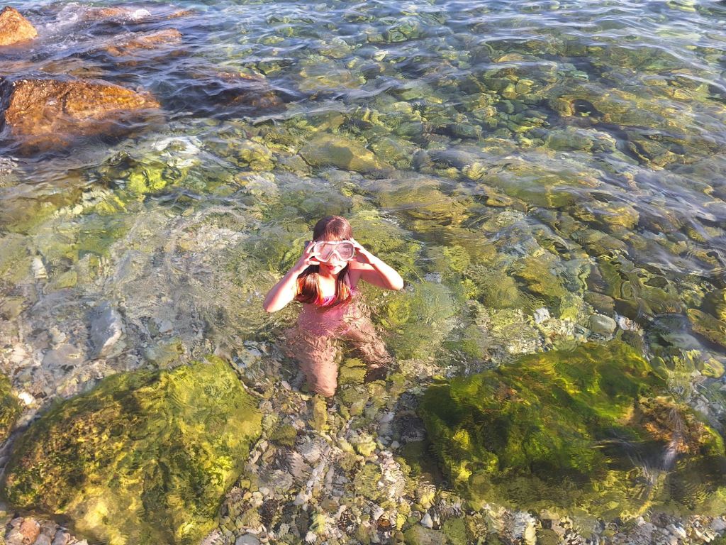 Medtem so se ostali zbudili, pozajtrkovali, šli na kavo in plavat. V vodi sva se jim pridružila tudi midva.