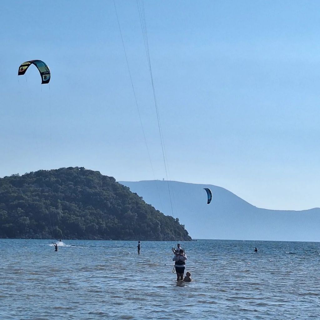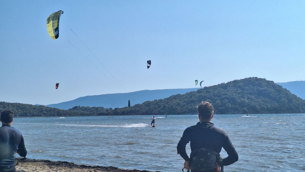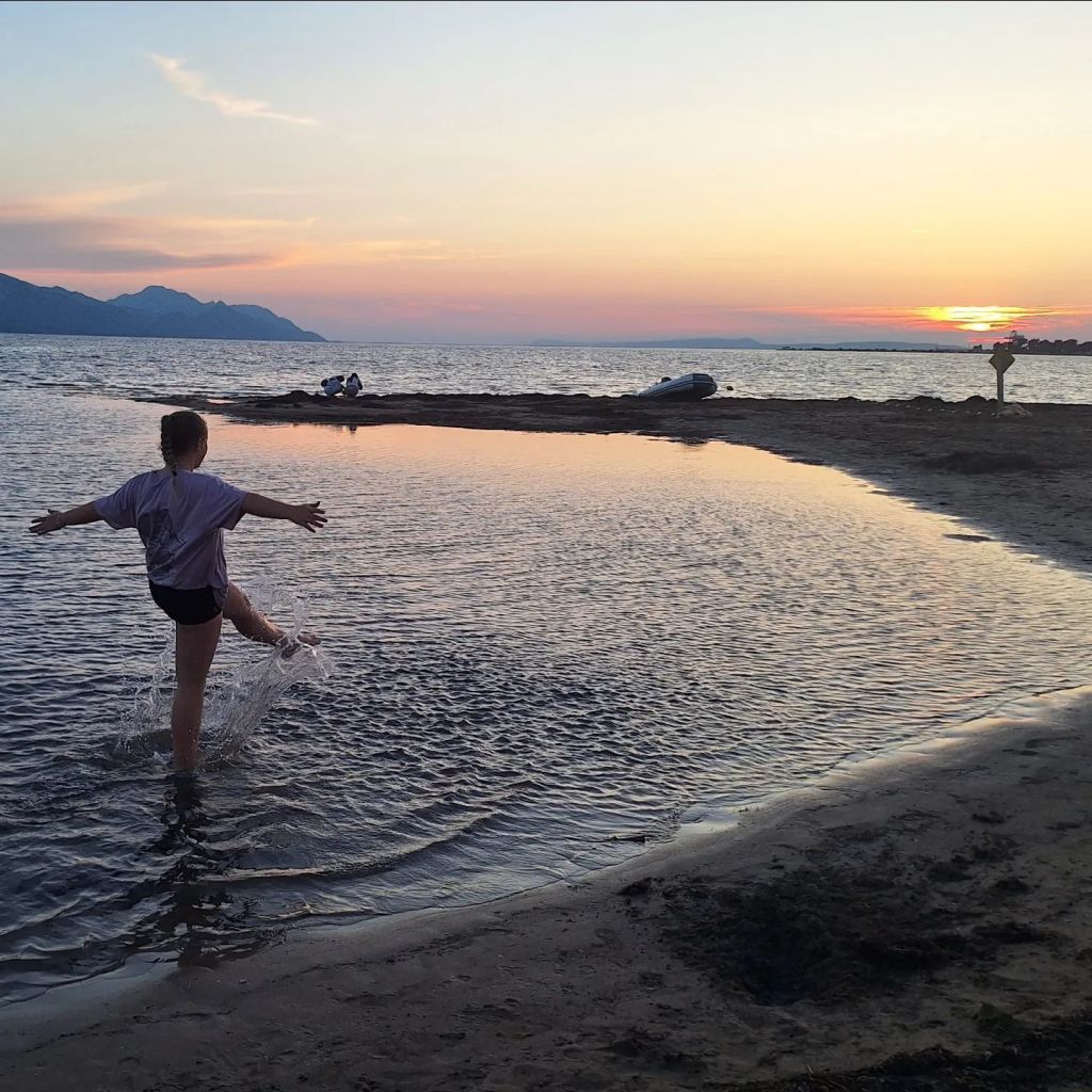 Otroci so uživali. Jurij in Hana sta se učila kajtat. Vozili smo se s čolnom, edini dan, ko ni bilo vetra za kajtat, smo šli v Bosno na čevape 😉 in malo po trgovinah. Pika je v vodi že čisto suverena.