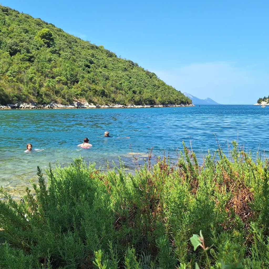 Jej. Uspelo mi je, da sem se zbudila, dovolj zgodaj, da sem odtekla/prehodila in se prebudila. Po zajtrku smo šli s čolnom na “našo” plažo. Gre za zalivček, ki smo ga odkrili lani. Je težje dostopen z avtom in je nekakšen divji kamp z zelo malo kopalcev.