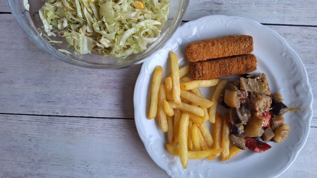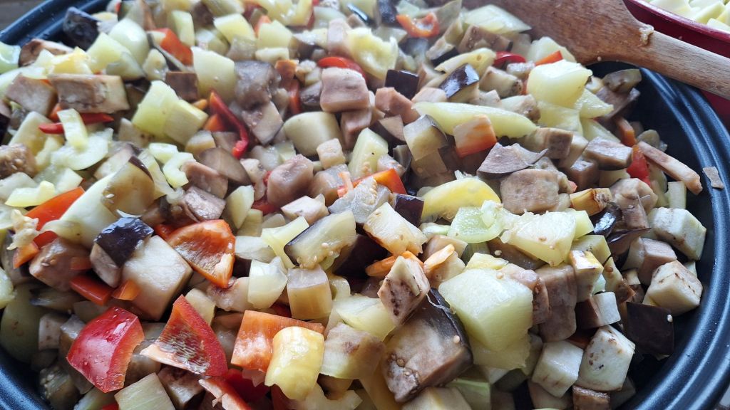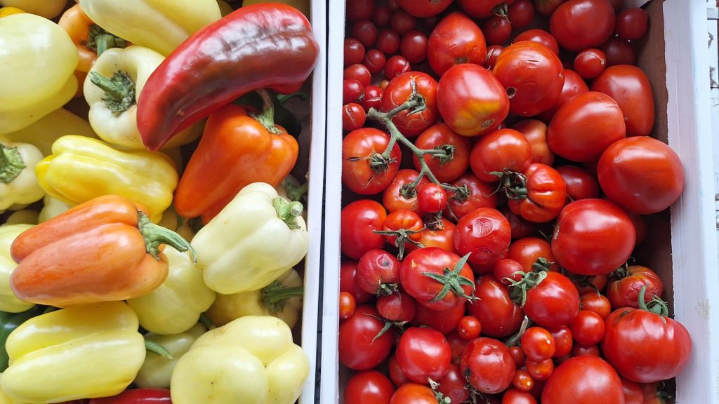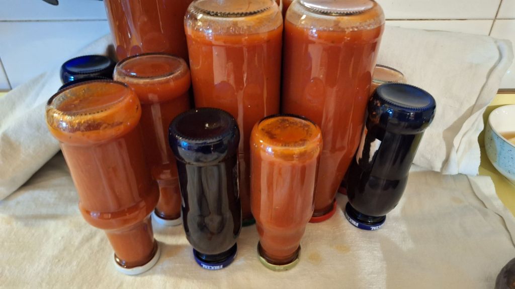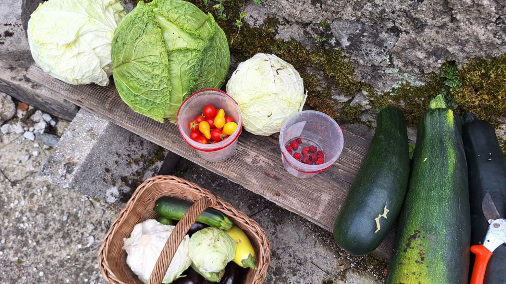 Na vrtu in iz rastlinjaka sva z Matejem nabrala zelenjavo. Skuhala sem paradiĹľnikovo omako z buÄŤko in omako za testenine.