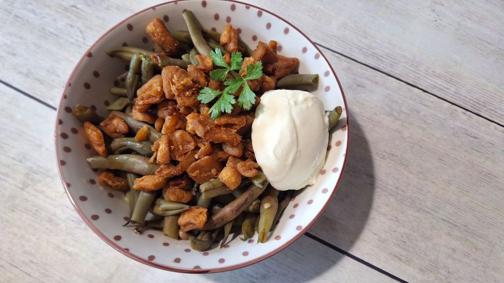 - StroÄŤji fiĹľol z ocvirki in kislo smetano