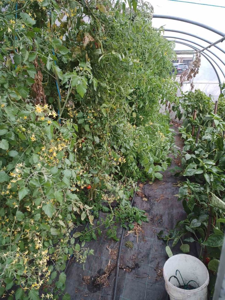Iz tople jeseni smo skočili v mrzla jutra, zato sem končno pospravila rože na toplo. A v rastlinjaku pa nič ne kaže na zimo. Paradižnik na polno cveti, kot da zime sploh ne bo. 🤷‍♀️