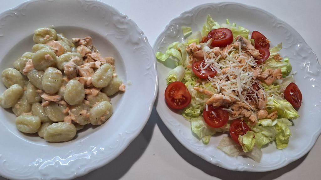 LCHF: ledenka, paradiĹľnik, peÄŤen losos, parmezan
