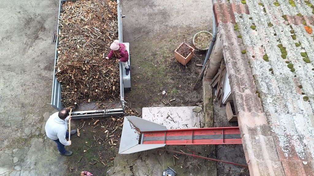 Mazej je v gozdu pospravljal veje in pripravljal sekance. Pripravili pa smo tudi domaÄe ocvirke, ker kupljeni veÄinoma vsebuje mleko, ki ga Pika ne sme.